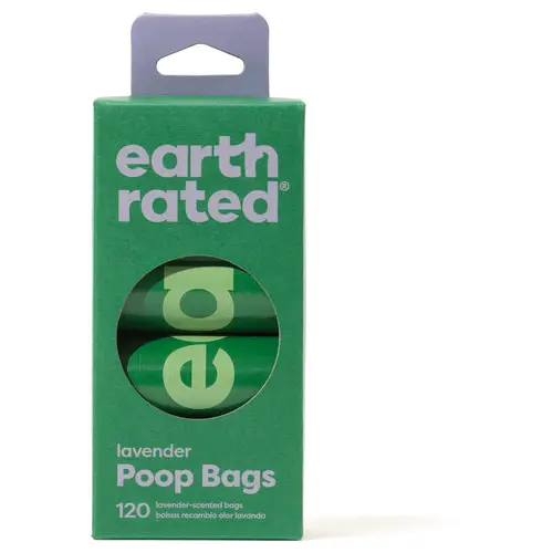 Deze poepzakjes met lavendelgeur zijn gemaakt van zeer stevige materialen en zullen niet lekken. Ze passen in de standaard poepzakhouder van Earth Rated. Het zijn 8 rollen van 15 zakjes.